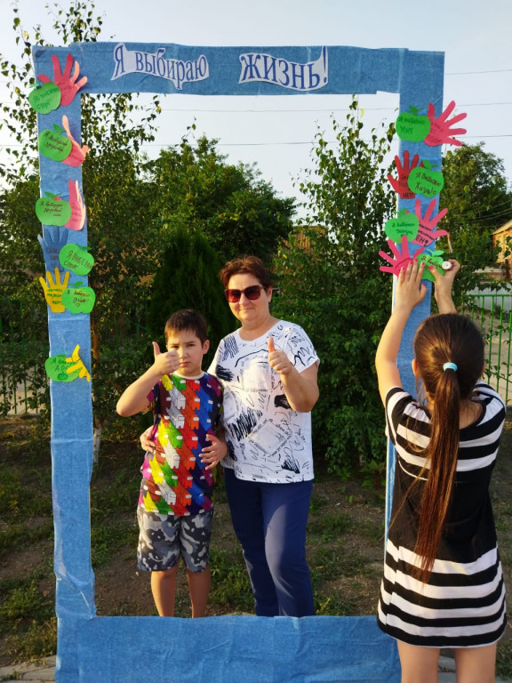 Также была организована акция «Я выбираю жизнь», в которой все писали на эмблемах «Я выбираю то ,что для него важно, чего он хочет в этой жизни» и «Нет наркотикам!» клеили эту символику на фотозону и фотографировались. Устроили выставку детских рисунков, которые там же и рисовали. Самое ценное что есть у человека-это жизнь, а главная ценность в жизни-это здоровье. Каждому из нас присуще желание быть сильным и здоровым, сохранить как можно дольше подвижность, бодрость, энергию и достичь, долголетие. Каждый делает вой выбор сам!