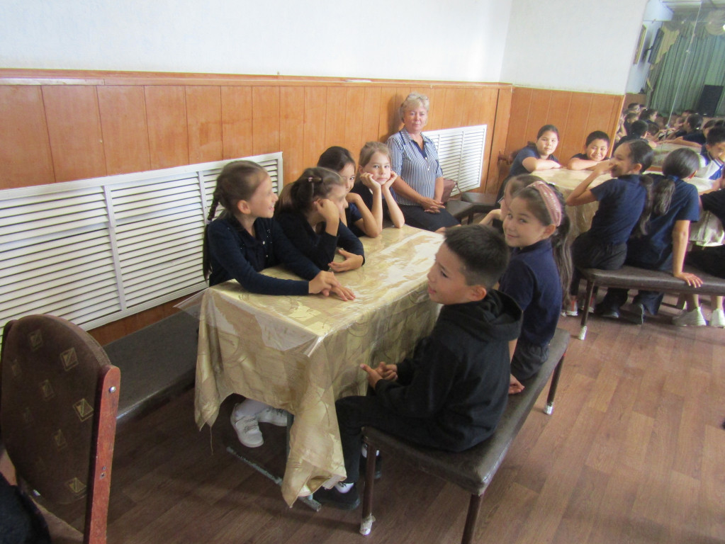 Нашими гостями были учащиеся 4 «А» и 4 «Б» с классными руководителями Рогачевой М.В. и Беляловой З.А. Программа пошла в форме викторины между 3 командами. Ребята с удовольствием и азартом играли в конкурсы, викторины, разгадывали ребусы, смотрели презентацию. Между интеллектуальными викторинами активно участвовали в подвижных играх, инсценировали сказки. В зале царила не только теплая, доброжелательная атмосфера, но, и здоровый дух соперничества.