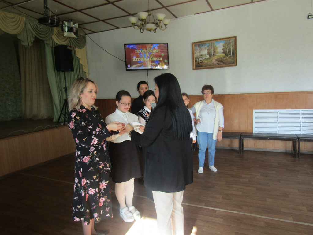 В Этот день в ДК "Кызан" собрались учащиеся 5-х классов с их классными руководителями Кадралиевой В.В., Байрамалиевой З.Р., Идрисовой Г.К. чтобы отметить торжественное событии: посвящение в пятиклассники.На этом празднике каждым стог проявить свой талант, продемонстрировать то чему они научились в начальной школе, своей смекалкой, ловкостью, актерскими способностями. умом, дружелюбием, логикой, умением работать в коллективе, внимательностью, интеллектом. То есть была "проверка" насколько дети повзрослели и достойны ли они гордого звания пятиклассник. Были проведены различные конкурсы и викторины в которых ребята с удовольствие участвовали. Замечательно справились с домашним заданием : Визитной карточкой. За каждое пройденное испытание команды получали буквы и в конце из них собрали слово "Пятиклассник". Ребята с достоинствами со всеми заданиями и собрали ключевое слово "Пятиклассник" и доказали что все они действительно достойны этого звания. В завершении мероприятия по традиции все дружно, хором произнесли клятву пятиклассника.