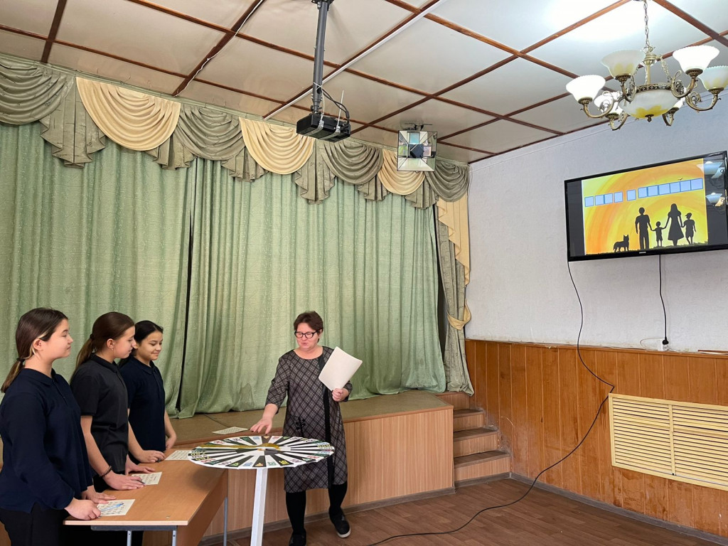 В рамках "Года семьи" в ДК "Кызан" прошла игра "Поле чудес" на тему "Семья". Участниками были учащиеся 6х класса.