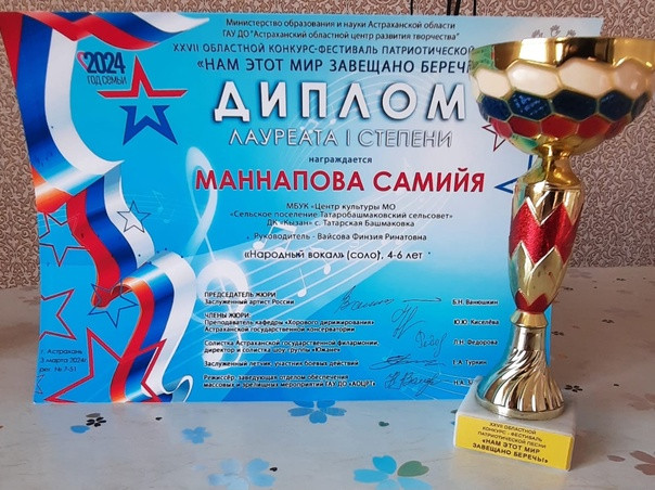 Самийя стала победителем и была награждена дипломом лауреата 1 степени и кубком