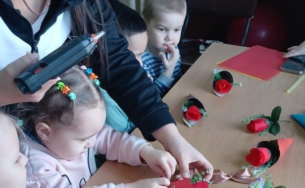 В ДК "Вдохновение" для юных жителей п.Ассадулаево провели мастер-класс в честь предстоящего праздника 8 марта «Подари радость маме» все были увлечены процессом создания подделки.