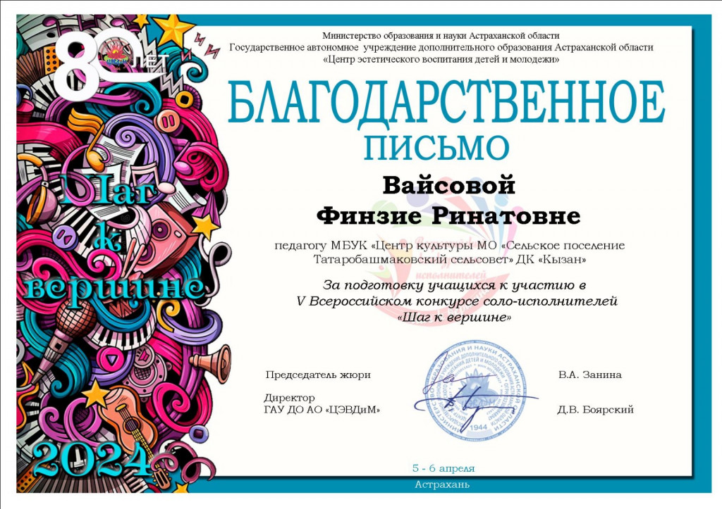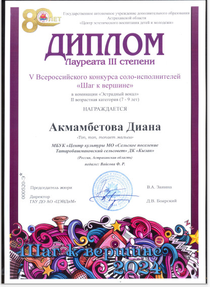 В Центре эстетического воспитания детей и молодежи города Астрахани прошел V Всероссийский конкурс соло-исполнителей "Шаг к вершине". Солистки вокального ансамбля "Горлявек" Дома культуры "Кызан" приняли активное участие. В это день собрали богатый "урожай"наград.