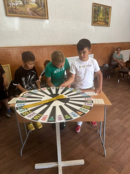 Участники по очереди крутили барабан и отвечали на вопросы.