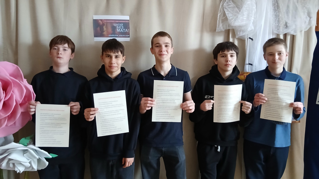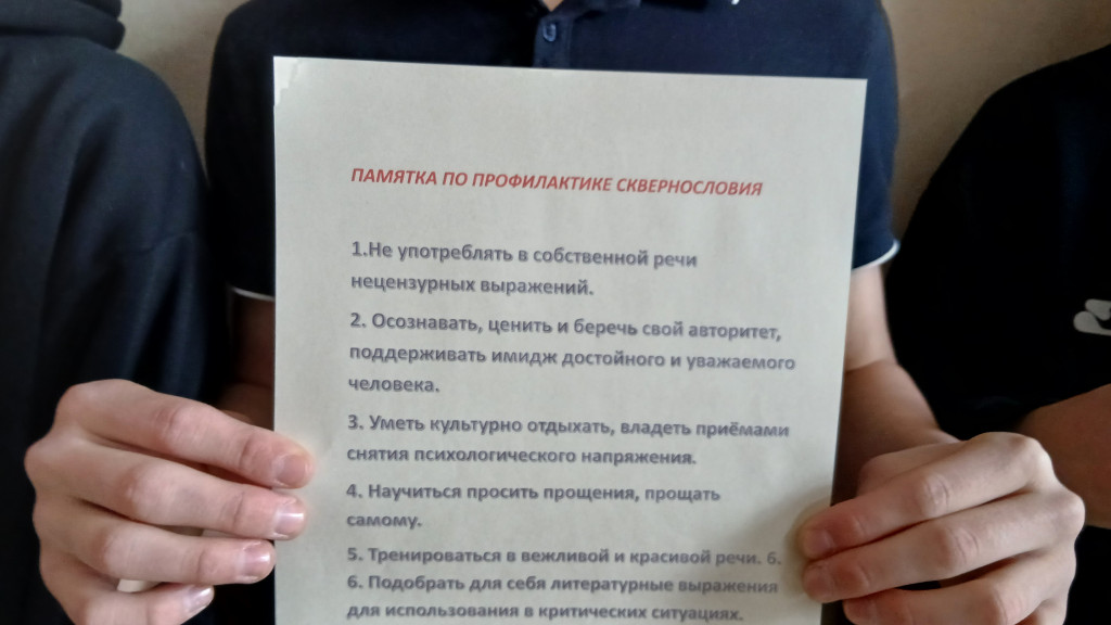 В ДК Вдохновение  п. Ассадулаево состоялась беседа, посвящённая проблеме употребления нецензурных слов среди подростков.   Ребятам напомнили, что язык – это один из главных инструментов общения, и от того, насколько он «чист», зависит атмосфера в коллективе и в семье.